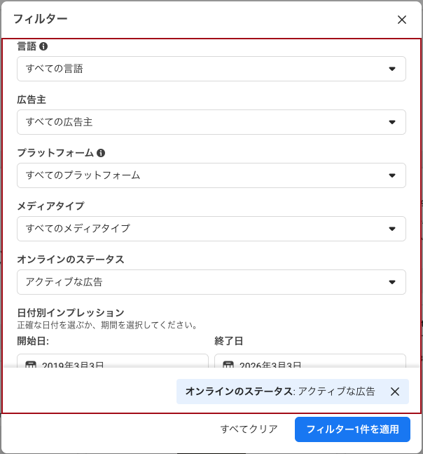 特に便利なのは、「いま配信されている広告」を自分から確認できる点です。